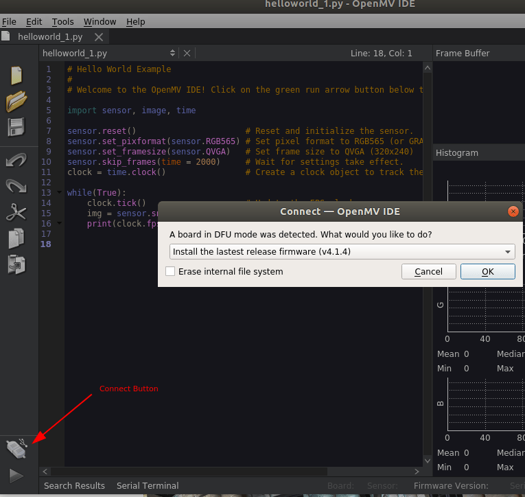 In this post, I want to try out the OpenMV / Micropython application. So our goal here is to setup OpenMV and test out the helloworld script on OpenMV. So, let’s go!!!